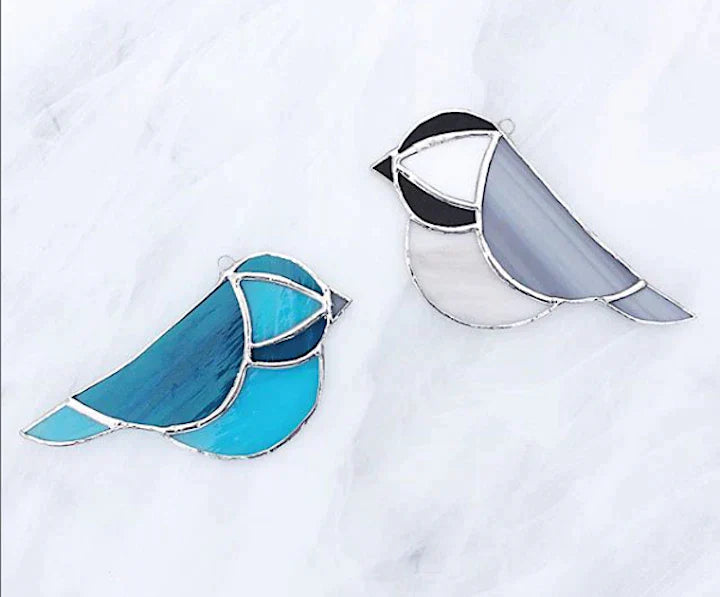 Please join Jess from Flux Glass Co for this fun intro to stained glass. Using glass pieces, precut and ground by Jess, make your choice of feather, blue jay, cardinal, bluebird, chickadee, green leaf, sun rays, mountains, sunflower, coneflower, bee or mushroom.
